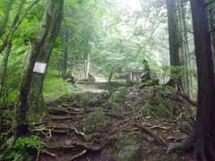 金沢峠から緩々と登って三峰山に着く。大きな石祠と座王大権現の石像は健在。ここの道標には「鳴神山まで1時間」とあり、元気付けられる。