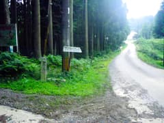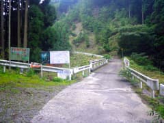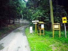 かつて中山道の宿場町であったという柏原の集落を通り、R21を横断して名神高速のガードを潜ると、霊仙山登山道入口の標識と登山届ポストがある。ここから先は人家が途絶え、谷間に広がる水田を垣間見ながら、杉林に囲まれて薄暗い車道を進む。分岐には古い道標がある。やがて大きな養鶏場が現れる。異臭には少々辟易。左脇の未舗装の林道を急ぎ足で通り抜ける。渓流の右岸を進み、左岸に渡る橋の手前に数台分の駐車スペースがある。この先は法面からの落石が多く、車の通行は不能である。