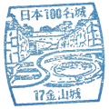 日ノ池に隣接する中島記念公園の休憩施設で一休み。「日本100名城」の記念スタンプを押印する。金山からの山岳展望の写真展示があり、それによると日本百名山の中の16座を見ることができるそうだ(末尾の参考URL)。