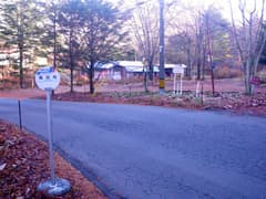 渓流に架かる橋を渡ると別荘地に入り、車道を下る。雲海は既に消え、弱い日差しが差し込む。「中部北陸自然歩道」の他に「中山道」の道標があるから、この区間も旧街道なのだろうか。