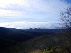 頂上直下のササとススキの草原の登りに取り付くと、背後に展望が開ける。眼下には雲海が広がって、八ヶ岳や奥秩父、富士山を遠望する。軽井沢は雲の下だから、まだ天気が悪いだろう。普通、山麓より山上の方が天気が悪いものだが、今日は珍しく逆である。ただし、上空にはうろこ雲が広がっているから、天気は下り坂だろう。