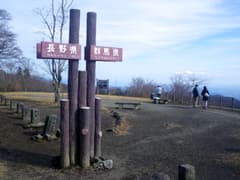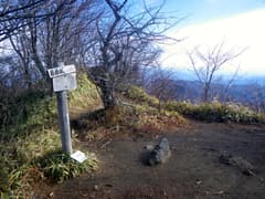 急坂を登り切ると県境稜線上の小天狗(1655m標高点)に着く。山名標の類は特になし。浅間山を仰ぎ、浅間隠山もよく眺められる。稜線を左に進んでみると国境平と二度上峠の分岐点となり、古い道標が立つ。