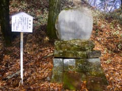 登山道に戻り、斜面を緩く下ると旧中山道に降り着く。思婦石(おもふいし)という歌碑があり、案内板によると群馬郡室田の国学者、関橋守が1857年に建てたとのこと。「ありし代に かえりみしてふ 碓氷山 今も恋しき 吾妻路のそら」という歌が刻まれている。