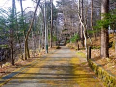旧中山道を右へわずかに上がれば旧碓氷峠に着く。ここは安政遠足のゴール地点。私も以前、参戦したことがあり、ヘロヘロになってここに辿り着いた。熊野神社にお参りして行こう。参道入口の狛犬は室町時代中期の作で長野県最古のものとのこと。神社の参道と境内の中心を県境が通り、群馬県側に熊野神社、長野県側に熊野皇大神社の社殿が県境を挟んで並び建つ。熊野と言えば八咫烏ということで、八咫烏の御札・御守に加えて、JFA日本代表エンブレム入りの御守が頒布されていたりする。