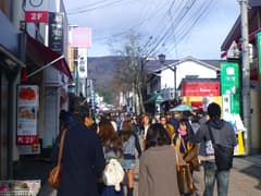 矢ヶ崎川に架かる二手橋を渡ると、かつての中山道の軽井沢宿、近代は外人宣教師の避暑地、現在は旧軽井沢メインストリートとして知られる繁華街に入る。避暑の季節はとうに過ぎているというのに、内外の観光客でごった返している。さすが三連休。しかし、こういう賑わいはお祭りのようで嫌いではない。お土産にタルトと地ビールを買い、ソフトクリームを舐めつつ軽井沢駅に向かう。