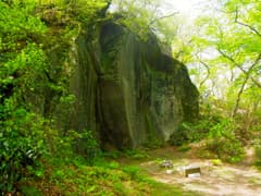 さらにこの先には「屛風岩」の道標がある。こちらは高さ10m位だろうか、名の通り屛風のような垂壁を見せる大岩で、これには感嘆する。