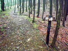 道標に従って杉植林を登ると、尾根上の山の神に着く。「←野峰」との新しい道標があり、ここから尾根道の登りとなる。