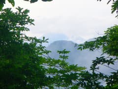 登り着いた野峰の頂上は杉林に囲まれて薄暗く、先週の根本山よりもさらに地味〜な頂である。展望はなく、僅かに雑木林の隙間から、頂上が雲に覆われた男体山を遠望する。こんな天気では、もちろんハイカーさんはいないし、途中、誰にも会っていない。