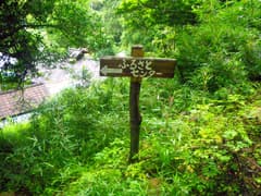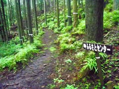 一休みしたのち、頂上南の石祠に立ち寄って、あとは往路を戻ってサクッと下山する。山の神から登山道を下り、林道に出たら道標に従って林道を右へ辿る。林道のT字路を左に下ると、ふるさとセンターの裏手を通って県道に出た。なお、ここには登山口の道標がないから、登る際は取り付きが分かり難い。