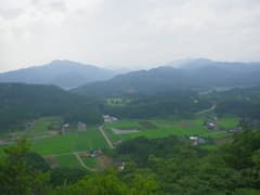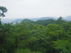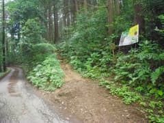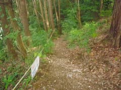 神社前の車道を左に進み、「岩山ハイキングコース」の道標から杉林の中の登山道に入る。最初は笹や草藪の間の道を緩く登る。蜘蛛の巣がしょっちゅう顔にかかるし、一週間後に投票日を控えた参院選の候補者を拡声器で連呼する声がガンガン響いて来るし、如何にも市街地の裏山という雰囲気の中を歩く。