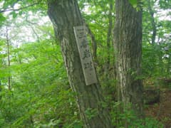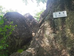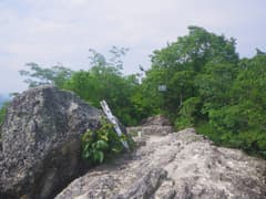 岩峰群を過ぎると樹林に入る。岩場を縫うように登ると、「三番岩275m」の山名標のあるピークに登り着く。樹林に覆われて展望はない。