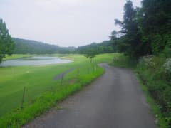 鎖場を下ればもう麓は近い。道標に導かれて分岐を右折するとゴルフ場に突き当たる。ネットに沿って踏み跡を辿ると、やがて車道に出る。あとはゴルフ場の芝生や池を眺めながら緩く下るだけだ。途中に「まむしに御注意下さい」との看板があり、ビビる。「防雷シェルター」という避雷針付きの小屋があるのは、落雷の多い地域ならでは。