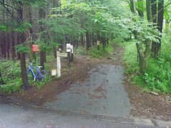 ここに駐車し、マイ自転車Radon I号で鍋割山登山口に向かう。標高差100mの下りで、最後だけ緩い登り。走っている間に気温が上がるのを感じる。登山口の路側には10台程の駐車があり、天気はいまいちでもハイカーさんは多い。ここに駐輪して、歩き始める。