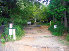 杉の大木の林の中に通じる階段を登り、石鳥居を二つ潜る。後の石鳥居には「是より霊峯本宮山 砥鹿神社 第一神域」の立て札がある。第一神域って、なんか格好良い。石段を登ると荒羽々気神社が建つ。荒羽々気(あらはばき)もカッコいい響き。健脚の守護神とのことである。