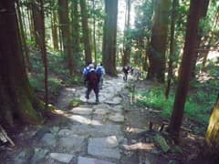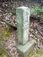 ハイカーさんに続いて本宮山に向かう。車道から登山道に入り、砥鹿(とが)神社の石鳥居を潜る。最初は傾斜の緩い尾根上の登山道を辿る。この道は本宮山上の砥鹿神社奥社の参道で、丁目石が間を開けて立ち並ぶ。中には「嘉永二(1849)年」の銘のある丁目石もあり、昔から参詣されていることがわかる。