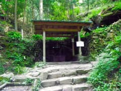林道に出て、左へしばらく林道を辿り、再び登山道に入って小さな谷を登ると、お清水舎があり、冷たい水が飲める。これはありがたい。
