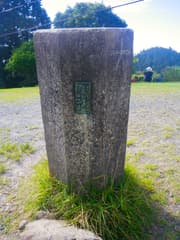 草地の中に一等三角点標石と山名標があり、その脇に風化したコンクリの六角柱が建つ。こりゃ何じゃと思って近寄って見ると「天測点 地理調査所」というプレートが付いている。私は初めて見るもので、珍しい。後日調べてみると、天文測量のために全国48ヶ所に設置された基準点で、現在は用いられていないそうな。