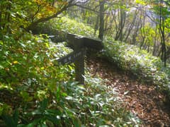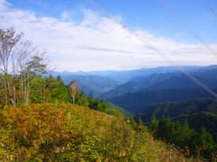 林道を歩いていると、年配のご夫婦に追いつく。挨拶して話をすると、キノコ採りで来ている、この秋はキノコはさっぱり、(名前は知らないが白いキノコを採っていて)うどんに入れると良いダシが取れる、などの話を伺う。登山で野坂峠から歩いて来ました、と言うと、昔、学校の遠足でこの道から赤城に登った、とのことである。
