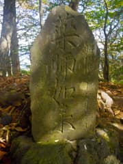 途中のピーク(ここから船ヶ鼻への稜線が分岐する)には「薬師如来」の石碑がある。「昭和丗二年七月吉日 野島氏建立」と刻まれている。