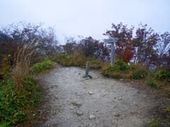子双山の頂上も展望はない。G氏の「コフタ山(ブの濁点が掠れて消えている)」と「児双山」の山名標、硯石山でも見た透明山名標で「子双山」があり、山名表記がバラバラだ。『赤城の神』ではコブタ山、子豚山と記されている。