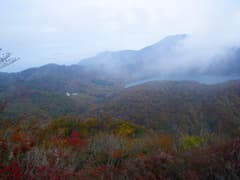 鍬柄山への登りの途中で、男性単独ハイカーさんとすれ違っただけで、鍬柄山頂上には誰もいない。四方に展望が開けるが、冷たい風と共に雲が流れて来て、黒檜山や地蔵岳を全部は見せてくれない。紅葉は見晴山の辺りが見頃。今週がピークだろう。もう晩秋どころか、初冬の雰囲気。寒いので長袖シャツを着る。ラーメンを作って昼食にしようかと思ったが、うっかり箸を忘れたことに気づく。まあ、アルコール燃料を腹に入れてあるし、非常食のチョコに手を付ければ保つだろう。頂上は寒いし、下山しますか。