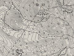 ここから鍬柄峠まで、現在の地形図では道の記載がないが、古い「沼田」5万分の1地形図には鍬柄峠通りの破線路が記載されている(左下図参照)。この破線路の痕跡がないかなと思って、林道を南に辿ってみたが、獣道はたくさんあっても古の登路らしいものはない。この辺り一帯、下生えに丈の低い笹原が広がる緩斜面なので(コブタ平と呼ぶらしい)、歩こうと思えばどこでも歩ける。緩斜面の上部は尾根に収束するので、もし道型があればそこで見つけられるだろう。ということで、適当な所から登り始める。