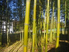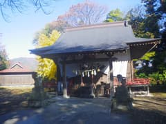 夜来の雨で土が黒く湿った畑地の中の一本道を、子持山や榛名山を眺めながら歩く。やがて右に折れて、赤城山の紅葉した山裾に向かって進む。県道を渡ると八幡宮があり、社殿の左隣にキンメイチクという竹の林がある。説明板によると、キンメイチクはマダケの変わりもので、竹の根本から先まで、節ごとの窪みに平行に黄色の模様が規則正しく並んでいるとのこと。竹棹を見ると確かに黄色の模様があり、珍しい(国指定天然記念物)。