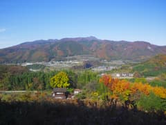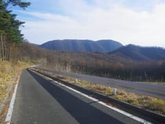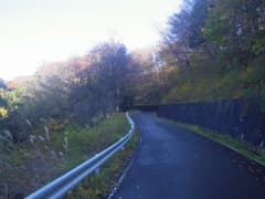 道は山の端に突き当たって左折。赤城山の裾野の急崖をつづら折りの坂道で上がる。振り返ると山麓や向かいの子持山に鮮やかな紅葉が散在する。