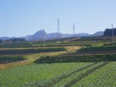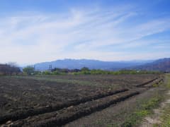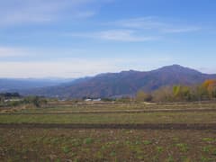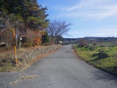 坂道を登り、関越道を跨道橋で越えると赤城山西面の広大な裾野に出る。周囲一帯は段々畑で、行く手には鈴ヶ岳や地蔵岳などの赤城の山々、左手には武尊山や遠く谷川岳を望む。車道歩きだが車通りは稀で、民家も疎ら。展望を楽しみながら一直線に登って行く。