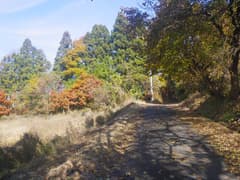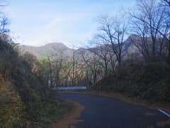 分岐に戻り、関東ふれあいの道から別れて車道を上がる。裾野の耕地の上端から振り返って子持山を眺めたのち、樹林の間の車道に入る。木々はすっかり葉を落とし、道に積もった枯葉をカサコソと踏んで歩く。
