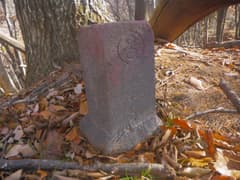 再び左側が切れ落ちた尾根上に登り着いた所に宮標石がある。ここから北へ少し下がると932m三角点(点名:花窪)があり、立ち寄るつもりだったが、あまりに気分の良い尾根歩きにウキウキして、三角点はうっかり通過する。