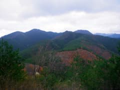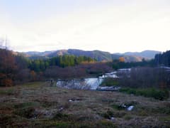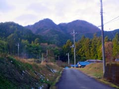 栗生神社から車道を下り、南尾根の東麓をトラバースする道に入る。鷲ノ手の集落に入ると、ストーブに火が入っているのだろうか、民家の煙突から薄い煙が上がって、薪の燃える香りが漂う。既に陽は傾き始めて、見渡す山々は朱色に染まっている。途中の民家はポツリポツリとあるだけで、侘しい雰囲気の道が続く。最後に振り返って栗生山を眺めたのち、荻ノ窪集落の中を下って駐車地点に戻る。