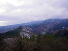 展望岩からは、西から北にかけての眺めが開ける。赤城山の頂上に相変わらず雲がかかっているのは残念。くず葉峠に連なる稜線は結構アップダウンがある上、まだまだ距離がありそう。今日はくず葉峠へは行かず、登山道で栗生神社に下り、林道を歩いて駐車地点に戻る予定である。