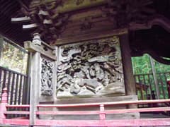 栗生神社は(案内板によると)寛政二(1790)年の建立で、新田義貞の家臣として勇猛で知られた栗生左衛門頼方を祀る。本殿には関口文治郎作の彫刻があり、壁面を埋め尽くした厚みのある彫刻が見事。また、拝殿の脇には推定樹齢1,200年、樹高46mの御神木の大スギがある。山奥深くにこんな立派な古い神社があることに改めて感心する。