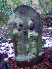 稜線が左折する所で、右に派生した枝尾根上に七つ目の石祠が祀られている。この石祠は東麓の鷲ノ手集落を向いている。屋根の上の苔の緑が鮮やかだ。