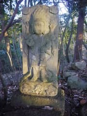 雑木林の尾根を辿り、露岩や赤松が現れると366m標高点に登り着く。ここから東に分岐する枝尾根上に浅利山というピークがあり、途中に石仏が祀られているそうだが、知ったのは後日なので通過してしまう。石仏は見たかった。雑木林の尾根が続き、展望には相変わらず恵まれない。441m標高点のピークのすぐ手前にも2基の石祠がある。片方には「山神宮」と「昭和八年十月再建 坂和氏子中」の銘がある。