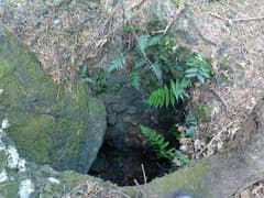 鍋沢山を越えてすぐ北側に、ネットの山行記録によく写真が載っている縦穴がある。恐々と覗き込むと、岩をくり抜いてかなり深いが底は見える。これは何かを試掘した跡かな。