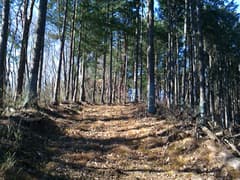 鍋沢山までは穏やかな尾根歩きが続き、単調な歩きだが距離はぐんぐん稼げる。途中でデジカメの電池が切れ、予備の電池もうっかり充電を忘れていたので、以降の写真は携帯電話のカメラで撮影。