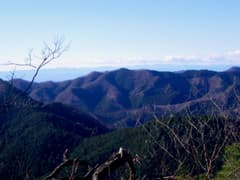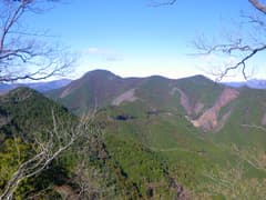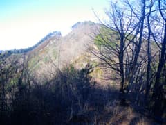 石尊山から北東の枝尾根上の浅間山を往復する。頂上から急坂を下り、しばらく平坦な尾根を辿る。途中、大鳥屋山に向かって4つのピークを連ねる稜線が眺められる。