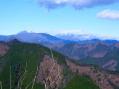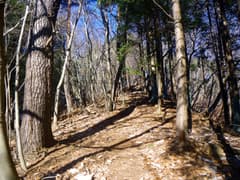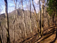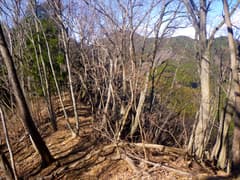 大鳥屋山から岳ノ山までは、既に歩いたことのある一般的な登山道だ。大鳥屋山から杉林の中を急降下。前沢への下山道を右に分け、尾根上を緩くアップダウンする。前回(2012年1月中旬)は吹き付ける寒風に震え上がりながら歩いたが、今日は暖かいくらいの陽気で、のんびり稜線を歩く。
