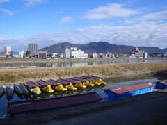まず、十八楼の前の通りを西へぷらぷらと散歩。この辺りは川原町といい、江戸時代に長良川の水運の要所として栄え、当時の町並みの佇まいを残しているとのこと。端で引き返して十八楼から東に行くと、鵜飼観覧船乗り場がある。長良川と言えば鵜飼で有名だが、この辺りでやるのだとは知らなかった。ただし、この時期は鵜飼のシーズン外である。
