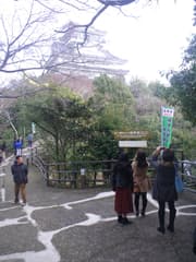 山頂駅から観光客の列に混じり、整備された散策コースを歩いて、山頂の岐阜城に向かう。歩道は緩やかだが、見おろす山の斜面はかなり急だ。山城としては難攻不落だろう。二の丸跡で天守閣が姿を見せる。「斎藤道三 織田信長ゆかりの岐阜城」という看板があり、その脇で天守閣を背景に記念撮影する観光客がなかなか途切れない。