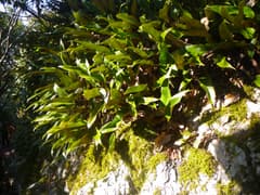 岐阜城資料館も見学したのち、山頂駅へ戻る。頂上稜線は岩場が続き、よくまあこんな険しい山上に城を築いたものと思う。岩場には青々とシダが茂り、後日調べるとヒトツバという種類らしい。ますます人出が多くなるなか、山頂駅に着いてロープウェイで下る。