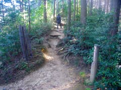 階段を登って馬の背と呼ばれる痩せた稜線上に出ると、ここからも天守閣が良く見える。「馬の背登山道下り口」の標識があり、「途中断崖や難所が多く大変危険です。体力に自信のない方は通行を控えてください。」との注意書きがある。観光客向けの警告と思うが、下山道を覗き込むと眼下に長良川温泉を俯瞰し、なかなか急峻で面白そうである。