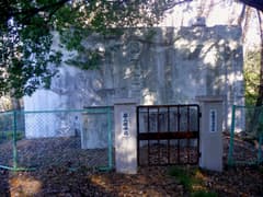 やがて尾根上を塞ぐ様に建つコンクリ製の構造物に突き当たる。門柱には「常磐簡易水道 第二配水池」とある。これはフェンス沿いに巻いて通過。ところどころで低木の小藪が現れ、小枝を躱して進む。303m標高点の次のピークは、北東に平坦な枝尾根を延ばす。何かあるかなと思って、そちらに行ってみるが、何もなし。主尾根は北西に向かって下る。