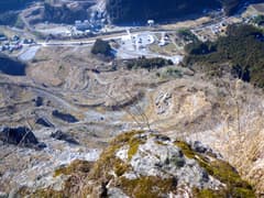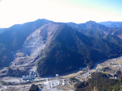 (後日調べると、この鉱山は村樫石灰戸叶鉱山といい、既に閉山されている。山麓に鉱山施設の遺構があり、廃墟マニアの間では有名な廃鉱山らしい。なお、念の為に書くと、オレンジ・ジャケットのおじさん達は廃墟マニアではない^^;)