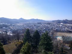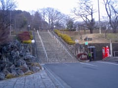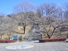 再び公園の中心部に戻って原人ステージの前を通り、石段をジグザグに登って展望台に上がる。嘉多山公園や葛生市街を俯瞰し、諏訪岳から唐沢山にかけての低い山並みを望み、(写真ではわからないが肉眼では)冠雪した浅間山を遠望する。