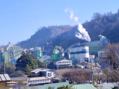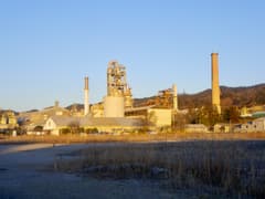 最初は公園の東端にある浅間神社。広い境内は高台にあるので、住友大阪セメントや吉澤石灰工業の工場が、水蒸気を濛々と上げて間近に眺められる。境内に建つ「移転建築記念碑」によると、当神社の創建は別の地。石灰石の埋蔵が判明して、採掘権を石灰工業関係者に移譲し、経済的には恵まれたが、工場からの粉塵の飛来が激しく、昭和43年に移転して来たとのこと。現在はどの企業も環境への配慮が求められているが、当時は大気汚染が社会問題となっていた頃で、被害も深刻だったのだろう。