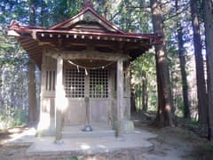展望台からさらに尾根上の石段を緩く登り、木の鳥居を潜ると、檜林に囲まれてこじんまりとした社殿が建つ。扁額には「嘉多山稲荷大明神」とある。