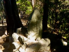 公園の西端には山神社がある。立派な木の鳥居を潜ると、玉砂利の境内の奥に木の祠が祀られている。こちらにも「遷宮の碑」があり、それによると、創建の地から昭和10年に長坂山の山腹に遷座されたが、参道が急坂で参拝が困難になったため、昭和61年にこの地に遷宮されたとのこと。山行前に読んだ『葛生の石仏』(昭和52年刊)には、山神社について次のような一文がある。